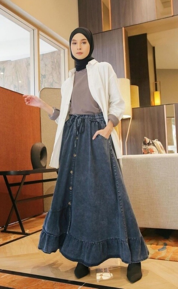 Rok jeans hijab telah menjadi salah satu fashion item wajib dalam lemari pakaian muslimah modern. Kombinasi antara bahan denim yang kasual dan kokoh dengan siluet rok yang sopan menawarkan fleksibilitas gaya yang luar biasa. Item ini membuktikan bahwa busana muslim tidak harus selalu formal, tetapi bisa tetap stylish dan nyaman untuk kegiatan sehari-hari.
